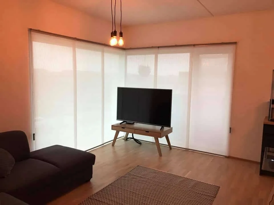 Paneelkaardinad on väga praktiline lahendus, kui soovid katta suuri pindu ja samas säilitada interjööris kerguse ja avaruse tunde. Kardinad saab kinnitada nii lakke kui seinale, olenevalt sellest, kas need katavad aknaava või toimivad ruumijagajana. Paneelide avamiseks on võimalik valida erinevaid lahendusi — need võivad avaneda ühes suunas, kahes suunas või keskele kokku.